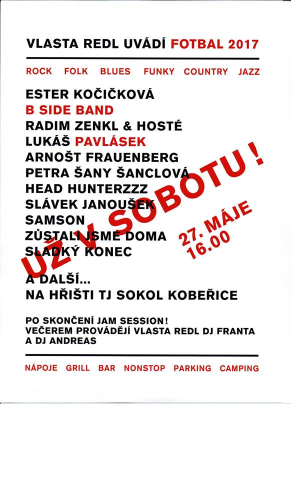 Rok se s rokem sešel a je tu opět čas pozvat všechny kamarády a příznivce na neformální setkání spřátelených kapel, písničkářů, muzikantů, malířů, sochařů, mistrů světa v hokeji a různých dalších komediantů, všeumělů a jiných extraordinérních podivínů, které se uskuteční již v sobotu 27. máje 2017.